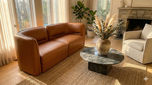 Designs: Contemporary Material: Leathere Color: Brown & Beige Shape: Rectangular Dimensions: H36 inch x L36 inch x W30 inch Finish: leather and...