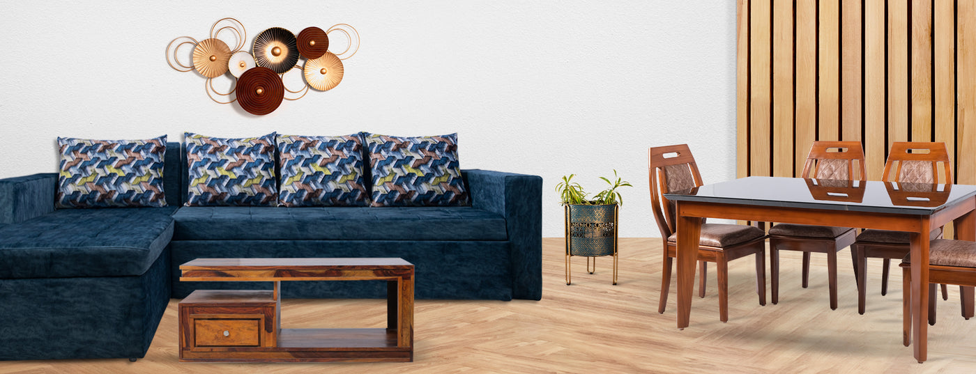 View full detailsMaterial: Wooden & Fabric Upholstery Color: Dark Brown (Wood) with Multi-Colored Cushions Finish: Matte Wood Finish Set Pieces: 5 Pieces (1 Tab...
