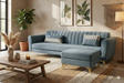 Adorn India Premium Luster 4 Seater L Shape Sofa Set | Velvet Suede Fabric | 3-Year Warranty | Color Grey with Golden Legs & Striped Pattern Cushion