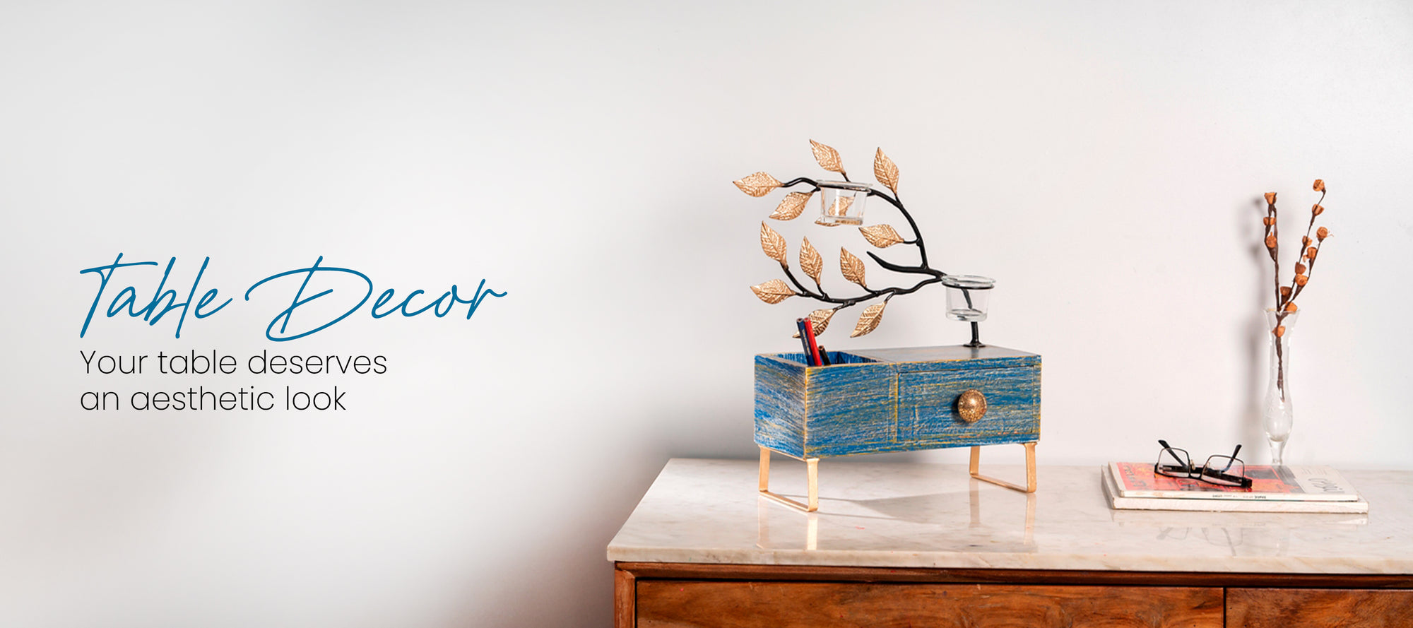 View full detailsMaterial: Metal with Wooden BaseColor: Blue & Gold with Brown Wooden BaseFinish: Handcrafted, Textured, Antique LookDimensions (Inches): Height...